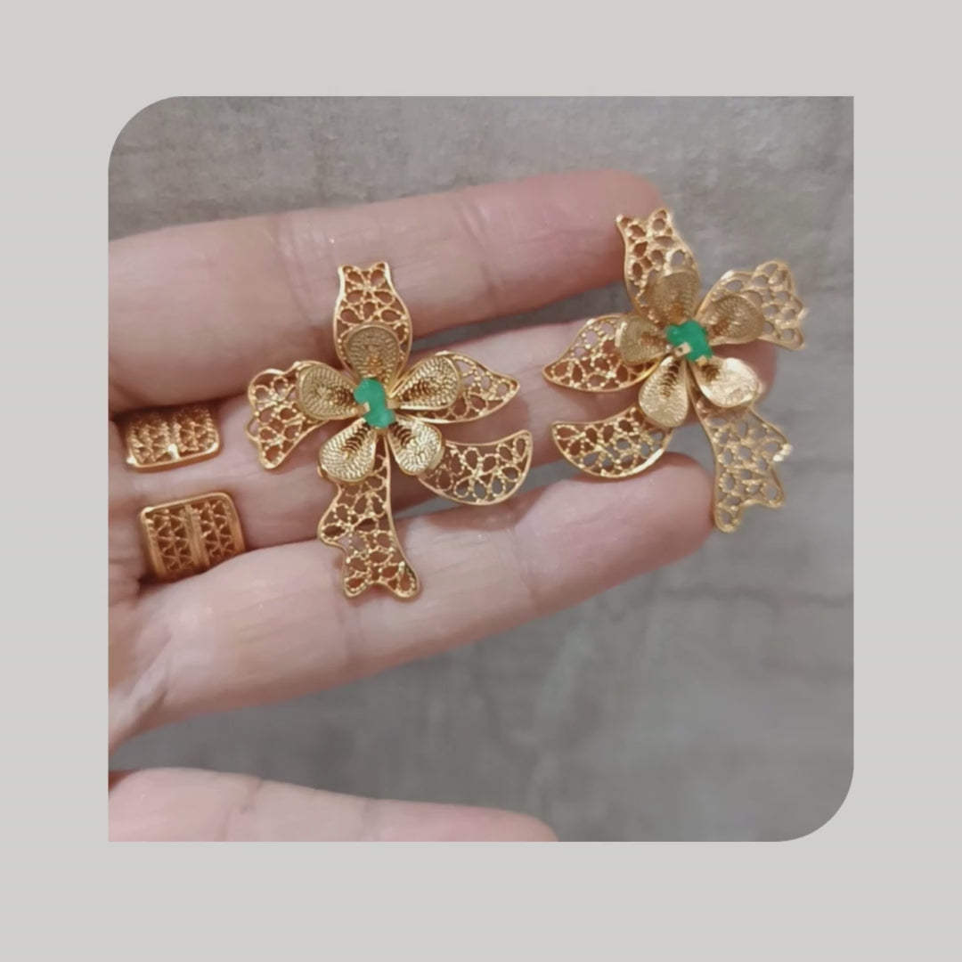 Aretes en filigrana orquídea y esmeralda